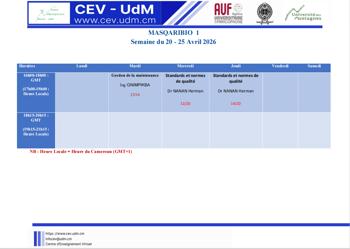 Formation diplomante des master en ligne porté par l'Université des Montagne (UdM), sous tutelle de l'Agence Universitaire de la Francophonie (AUF) et de l'université de Ngaoundéré.