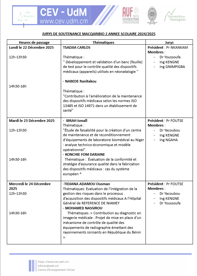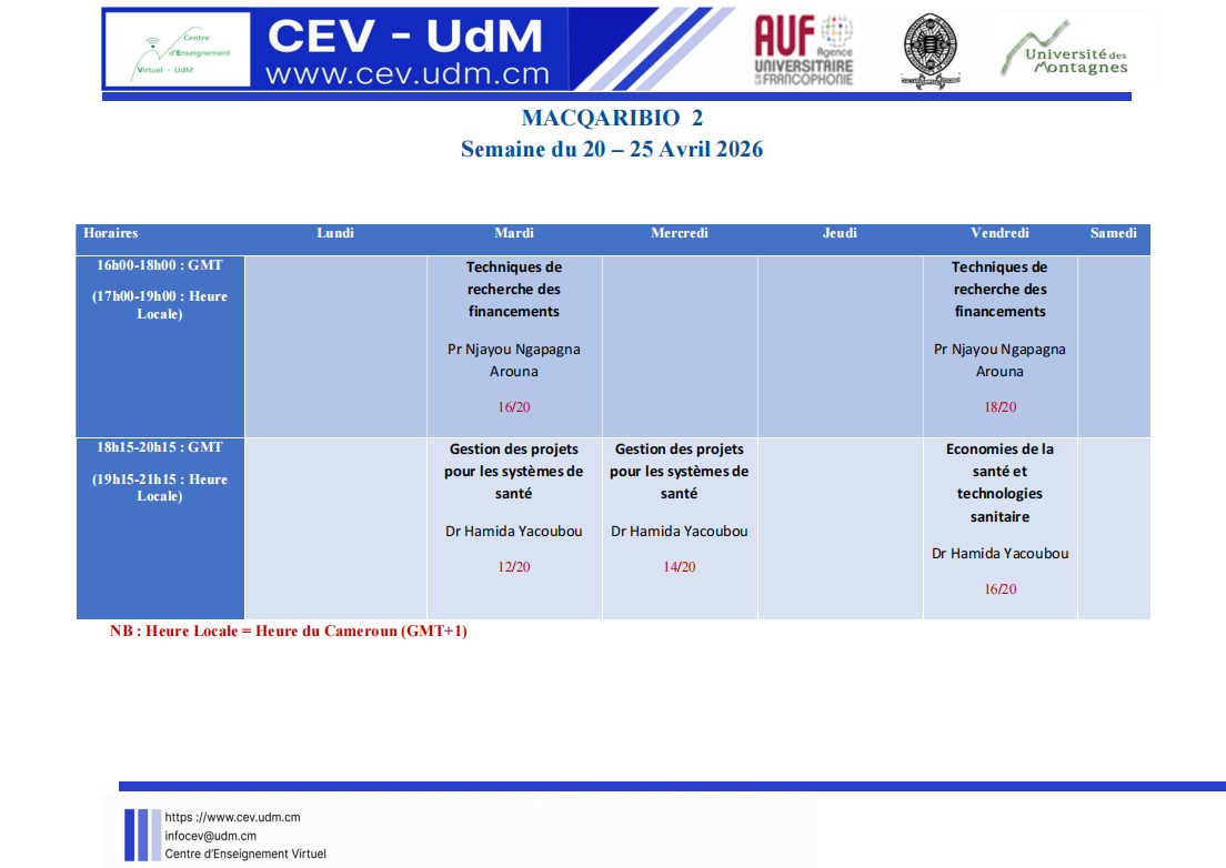 Pour nous appeler : 693588474 Courriel : infocev@udm.cm
