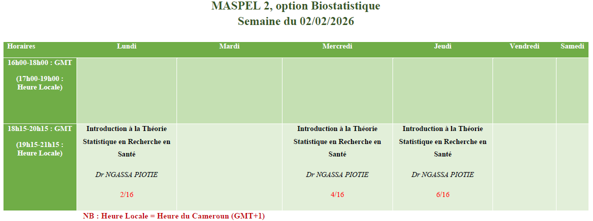 M2 Santé Publique Option BIOSTATISTIQUE, E-Learning (MASPEL_BIOSTAT2)